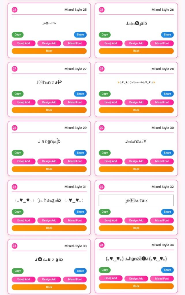 Once you've created the perfect stylish name or bio, simply click the copy button next to your preferred design and paste it directly into your social media profiles, gaming platforms, or any other digital application.